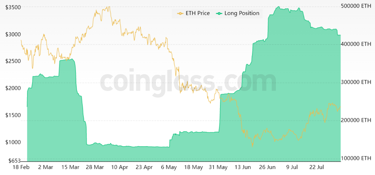Ether margin longs peaked at 500,000 ETH on July 2, the highest level since November 2021. However, data shows those savvy traders have reduced their bullish bets as the ETH price recovered some of its losses. Data shows no evidence of Bitfinex margin traders anticipating the 65% correction from May to sub-$1,000 in mid-June.