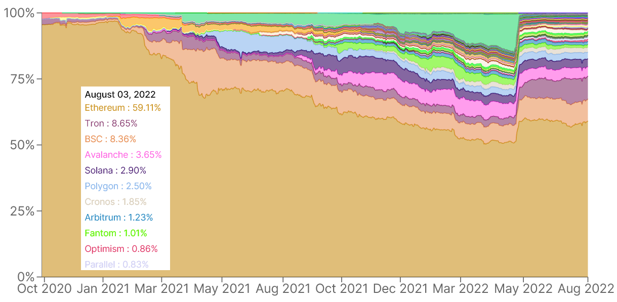 Ethereum’s total value locked (TVL) has vastly benefited from Terra’s ecosystem collapse in mid-May. Investors shifted their decentralized finance (DeFi) deposits to the Ethereum network thanks to its robust security and battle-tested applications, including MakerDAO (MKR) — the project behind the DAI stablecoin.