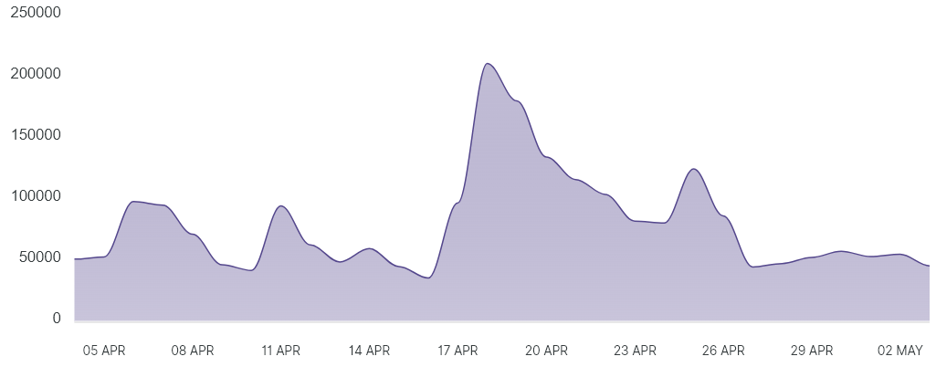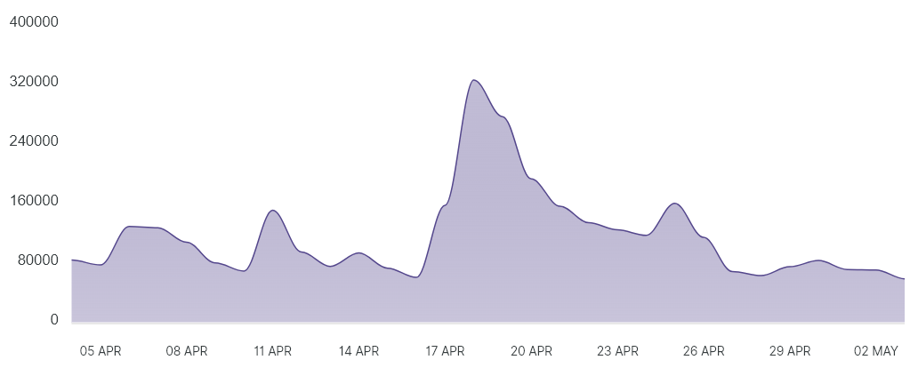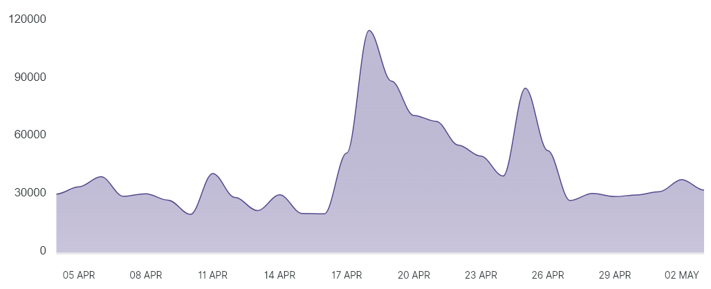 According to Terrascope data, the Terraswap decentralized asset liquidity application had 31,400 average daily transactions over the past week. The number is similar to the levels seen in early April.
