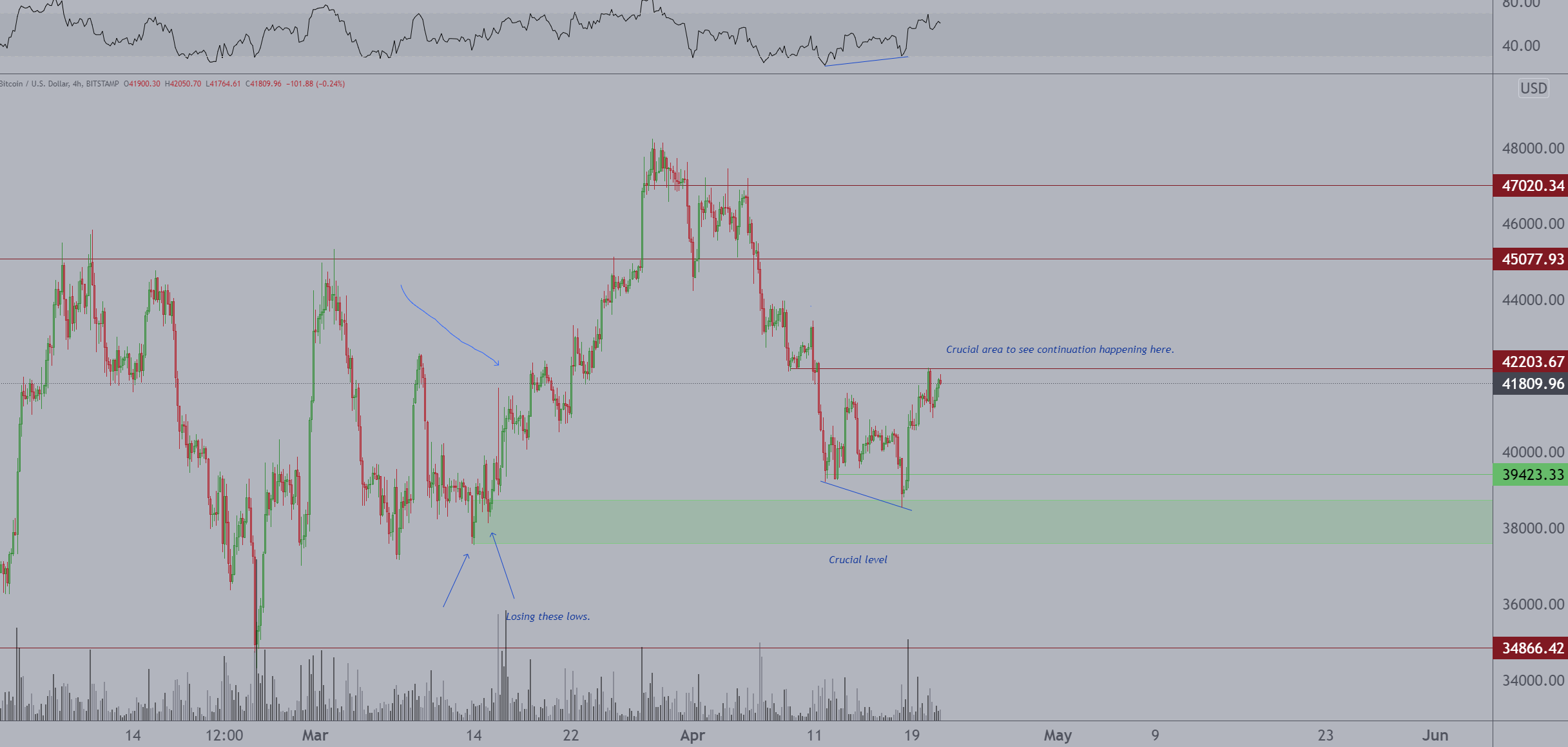 According to independent market analyst Michaël van de Poppe, $42,300 is the crucial level that needs to be overcome.