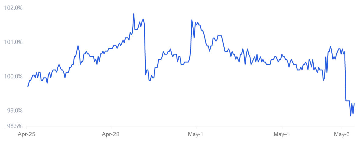 The OKX Tether premium peaked at 1.7% on April 30, indicating some excess demand from retail. However, the metric reverted to a 0% premium over the next five days.
