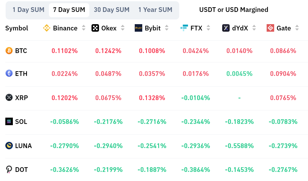 Accumulated 7-day perpetual futures funding rate. Source: Coinglass