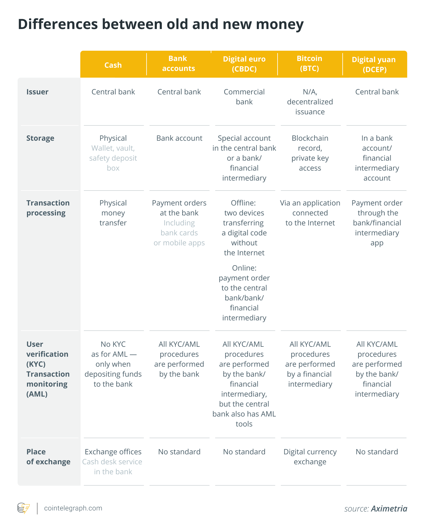 The differences between “old” and “new” money shown above are just a few examples, but they are significant enough that we can’t anticipate the seamless use of different forms of money. That is why the compatibility between them is especially important for many banks and fintech services.