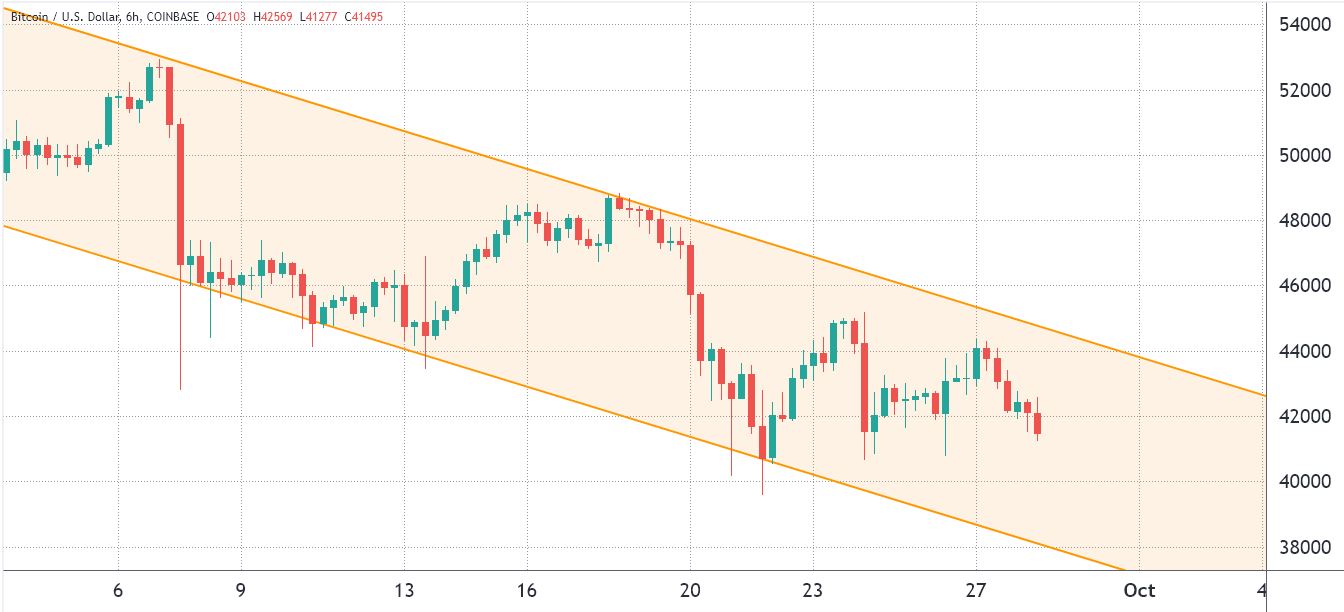 Over the past 25 days, every attempt to break the descending channel has been abruptly interrupted. Curiously, the trend points to sub-$40,000 by mid-October, which happens to be the deadline for the U.S. Securities and Exchange Commission decision on the ProShares Bitcoin ETF (Oct. 18) and Invesco Bitcoin ETF (Oct. 19).