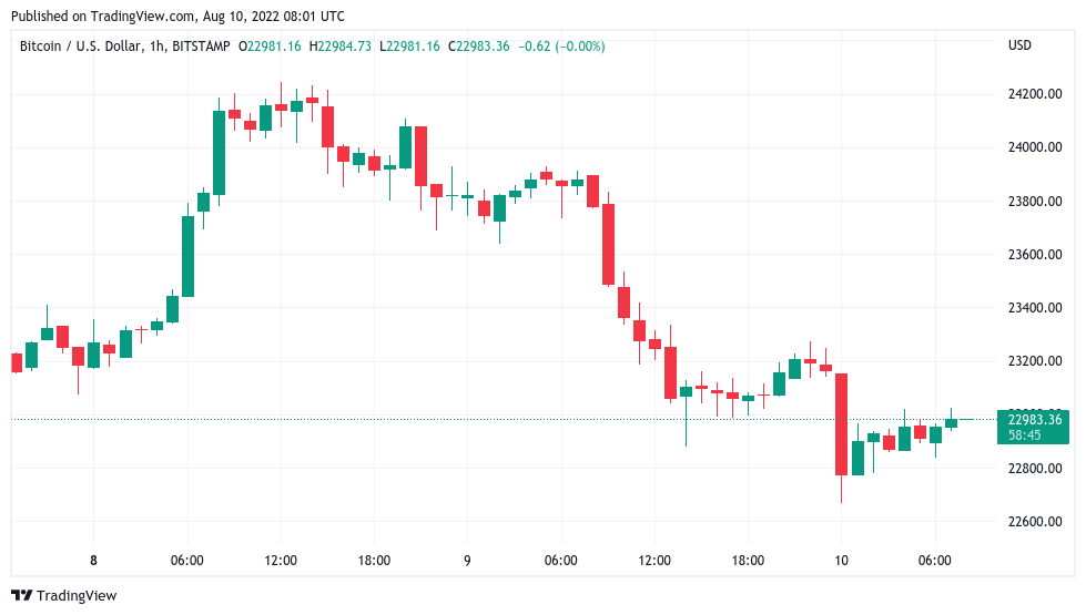 BTC/USD circled $23,000 at the time of writing after dropping more than $1,000 the day prior.