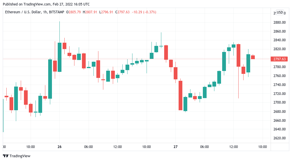 ETH/USD traded at near $2,800, with weekly gains nonetheless approaching 6%.
