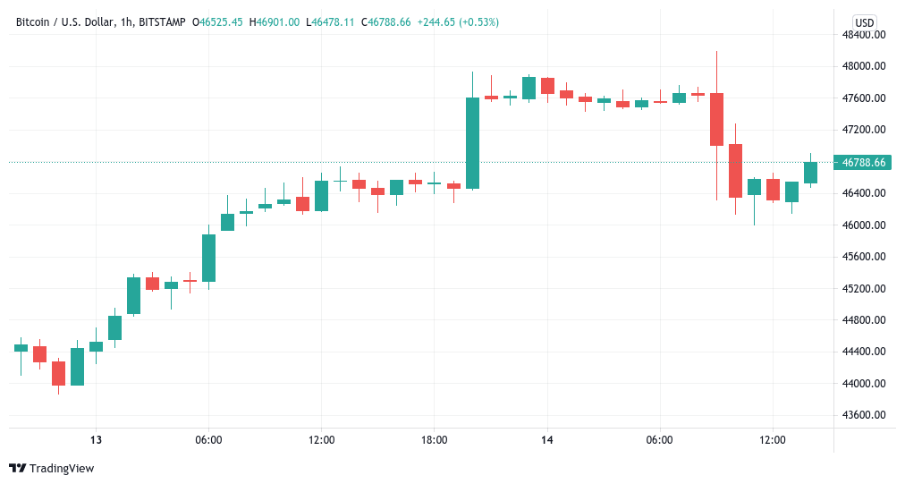 At the time of writing, BTC price action focused around $46,500, a classic “Bart Simpson” structure characterizing the past 24 hours’ movements.