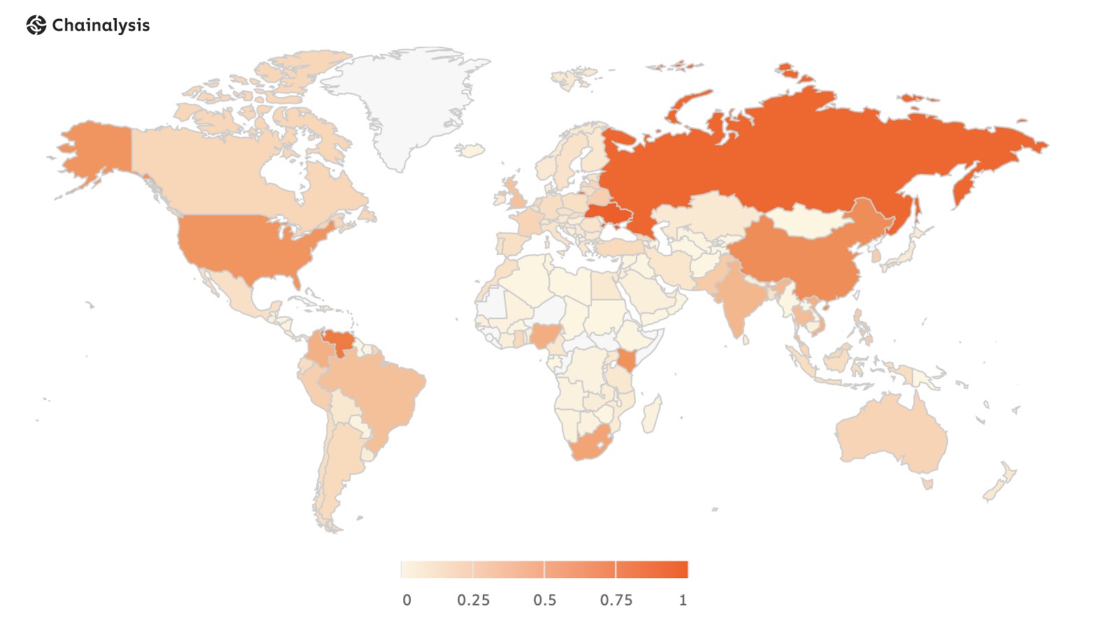 International adoption of cryptocurrencies / Source: Cryptocurrency Adoption Index 2020