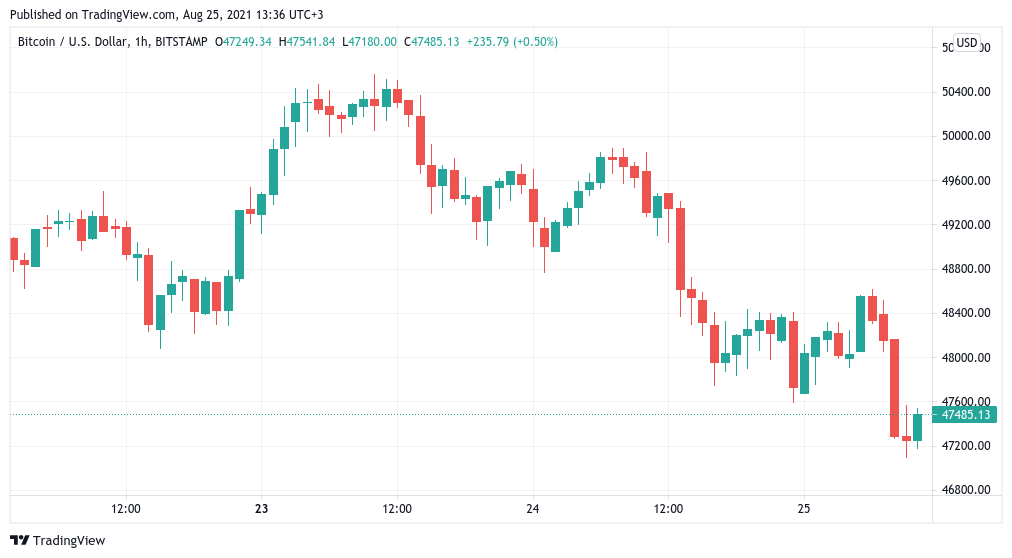 Data from Cointelegraph Markets Pro and TradingView showed BTC/USD losing around 2% overnight Wednesday.