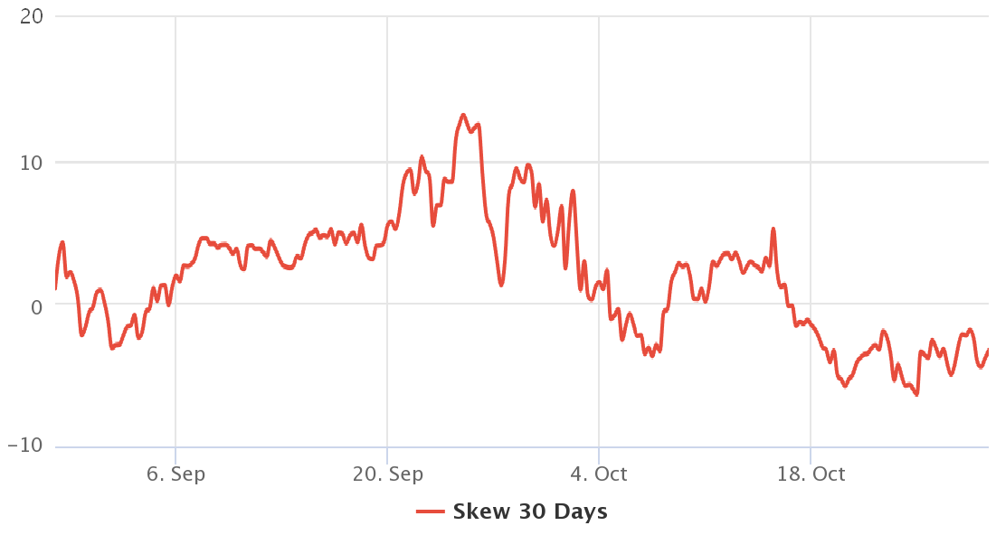 The 25% delta skew has been ranging in the neutral zone since Sep. 30. The latest bottom on Oct. 25 was negative 6%, not enough to be considered moderate bullishness. However, not even Bitcoin’s 12.5% correction from $66,600 on Oct. 21 to $58,200 on Oct. 28 was enough to inflict fear on professional traders.