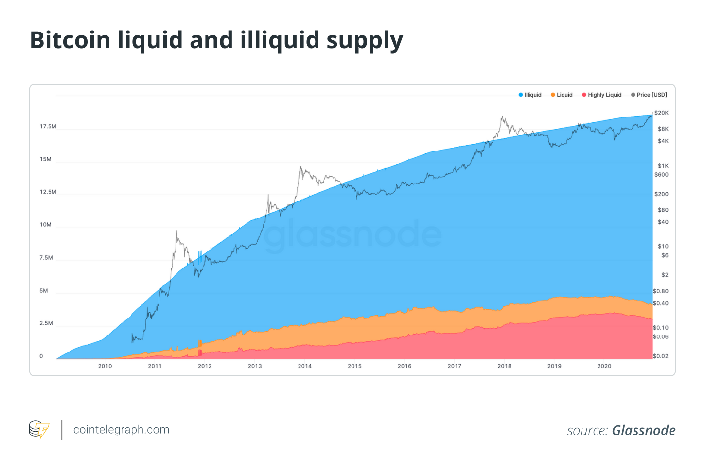 It is also important to consider the proportion of BTC actually in circulating supply before assuming the price implications of Bitcoin volumes. According to research from Glassnode, 78% of Bitcoin’s supply is illiquid, thus implying the supply-demand economics of the asset is only a small aspect of how its price is influenced.