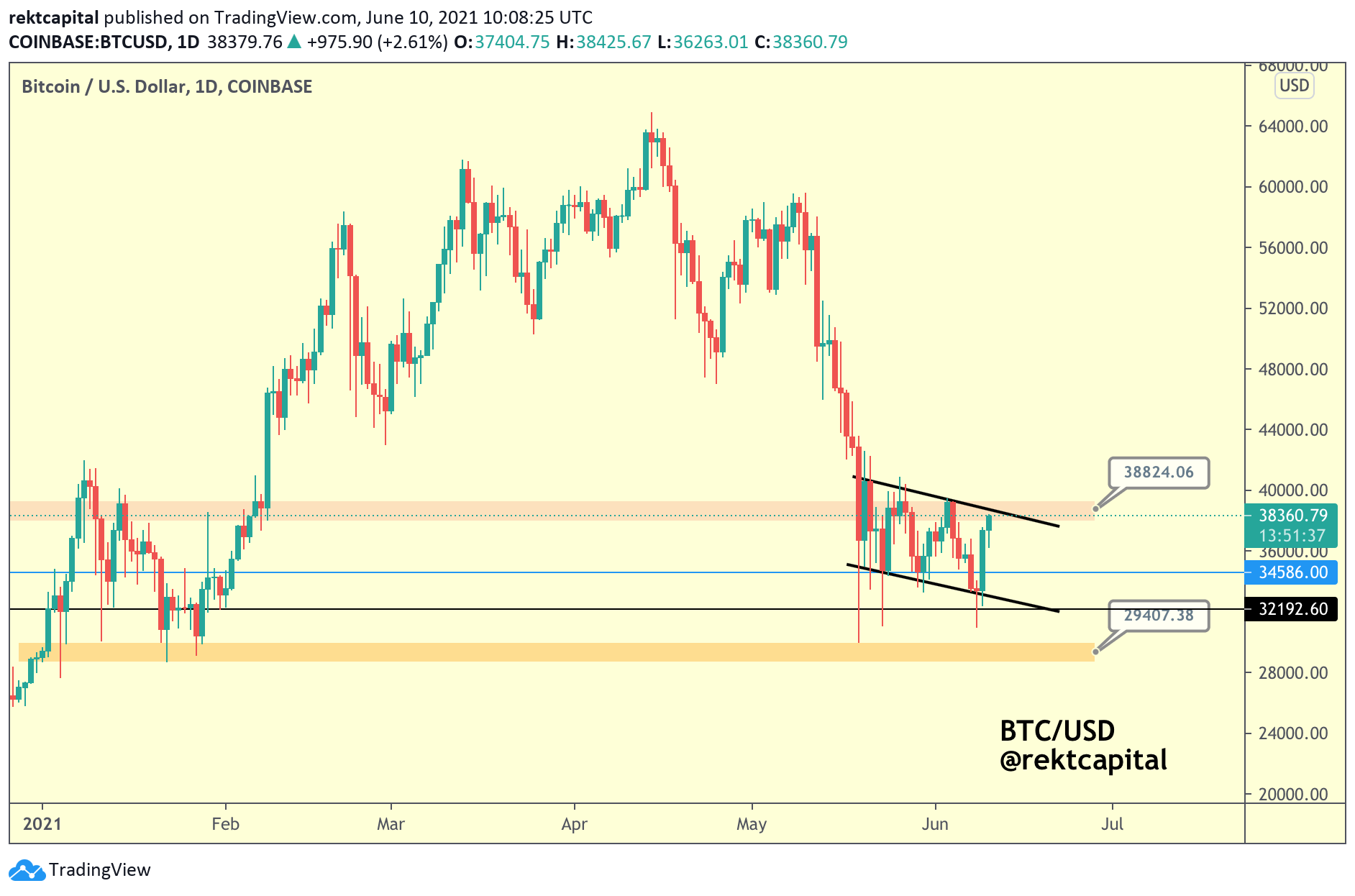 For popular trader Rekt Capital, $38,000 needed to be flipped to support.