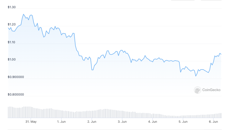 Despite the platform’s DDoS issues, Stepn’s native token, the Green Satoshi Token (GST), has not seen any critical decline over the past several days. On the contrary, the GST is up around 10% over the past 24 hours, trading at $1.04 at the time of writing. The token’s market capitalization amounts to $624 million, according to data from CoinGecko.