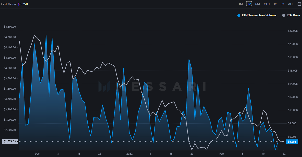 Conditions were ripe for Cardano’s move up the ranks as both Bitcoin and Ethereum have seen declining network activity lately. Bitcoin 24-hour volume is down 84% from the 3-month peak of $116 billion on November 25. Ethereum volume has been declining since December 4 when volume reached a 3-month peak of $21.29 billion. It was down 82% to a 3-month low of $3.99 billion on Feb. 19.