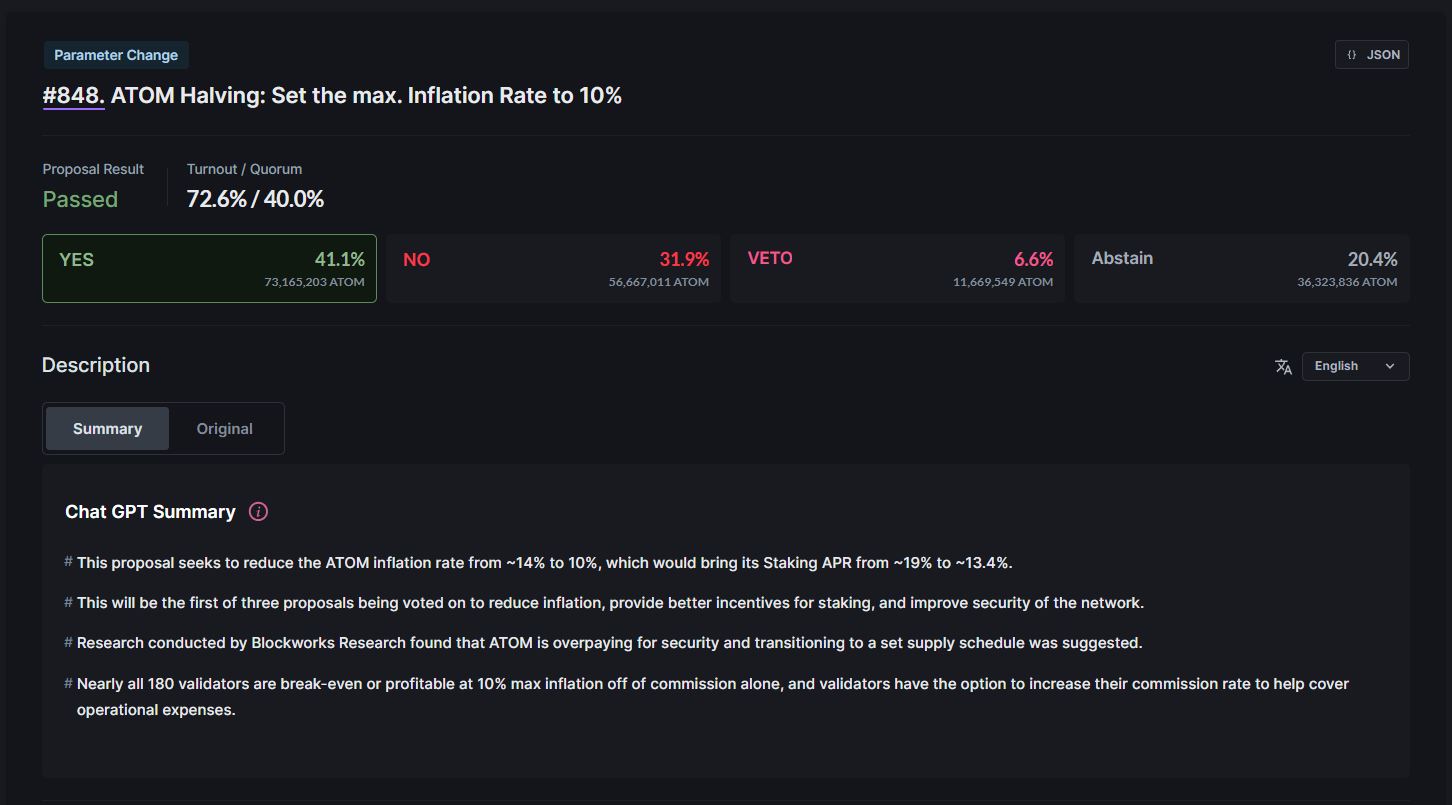 The proposal contended that Atom’s elevated inflation rate, compared to similar tokens, resulted in the Cosmos Hub overspending for security. It also argued that validators could still achieve breakeven or profitability even with inflation reduced to 10%.