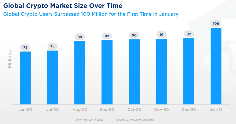 The estimated number of crypto users has exceeded the 100 million mark this year, and has annual growth rates of over 100%. Consequently, over 1 billion people will be using cryptocurrencies in just over three years. Digital central bank currencies (CBDCs) and the introduction of private stablecoins like Diem will further drive global adoption of digital currencies.