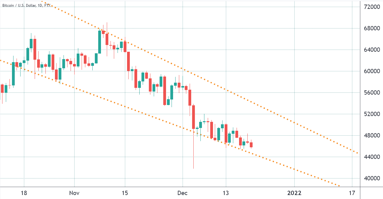 Curiously, the Nov. 10 price peak happened right as the United States announced that inflation has hit a 30-year high, but, the mood quickly reversed after fears related to China-based real estate developer Evergrande defaulting on its loans. This appears to have impacted the broader market structure.