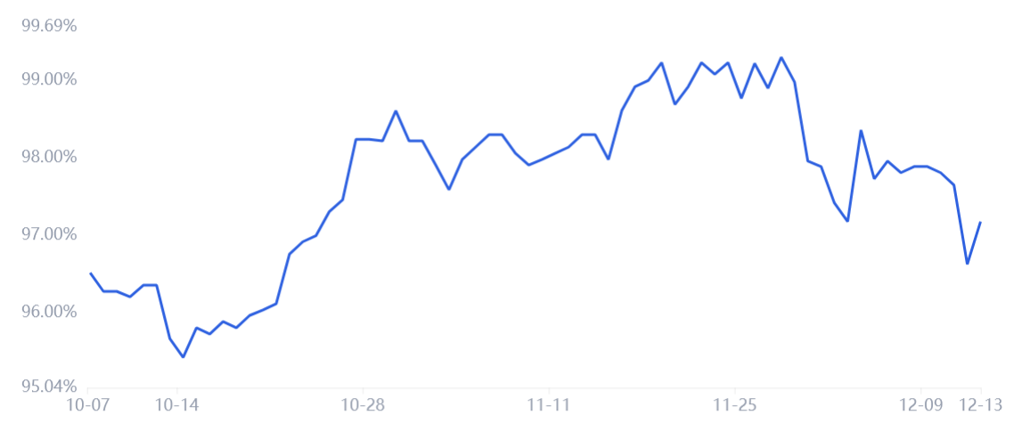 The Tether indicator bottomed at 96% on Dec. 13, which is slightly bearish but not alarming for a 10% total cryptocurrency market capitalization drop. However, it has been over two months since this metric surpassed 100%, signaling a lack of excitement from China-based traders.