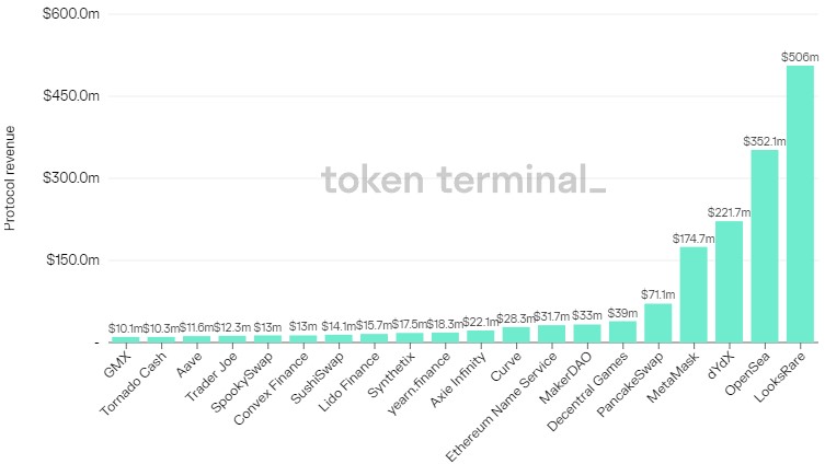 Data from Token Terminal shows revenue positive platforms are primarily the nonfungible token (NFT) marketplaces like LooksRare and OpenSea.