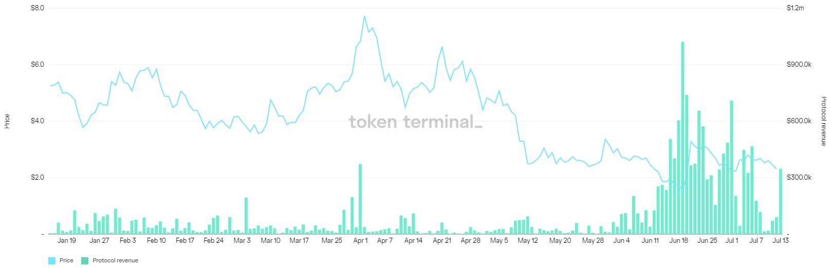 Since the cross-chain collaboration was established, the protocol revenue for Synthetix has seen a tremendous increase that coincided with a rise in the price of SNX from $1.56 to its current price at $2.59.