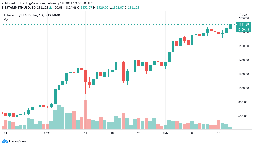 Ether (ETH) hit fresh all-time highs and neared $2,000 for the first time on Feb. 18 as momentum returned to trading.