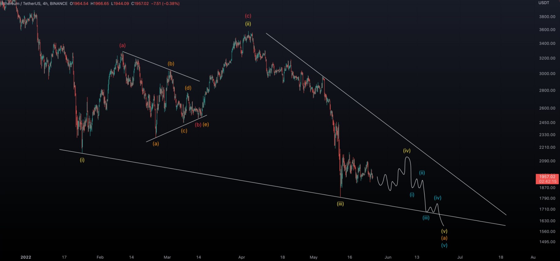 According to Twitter analyst Crypto Tony, Ether price is “still looking for that leg down to load up on.”