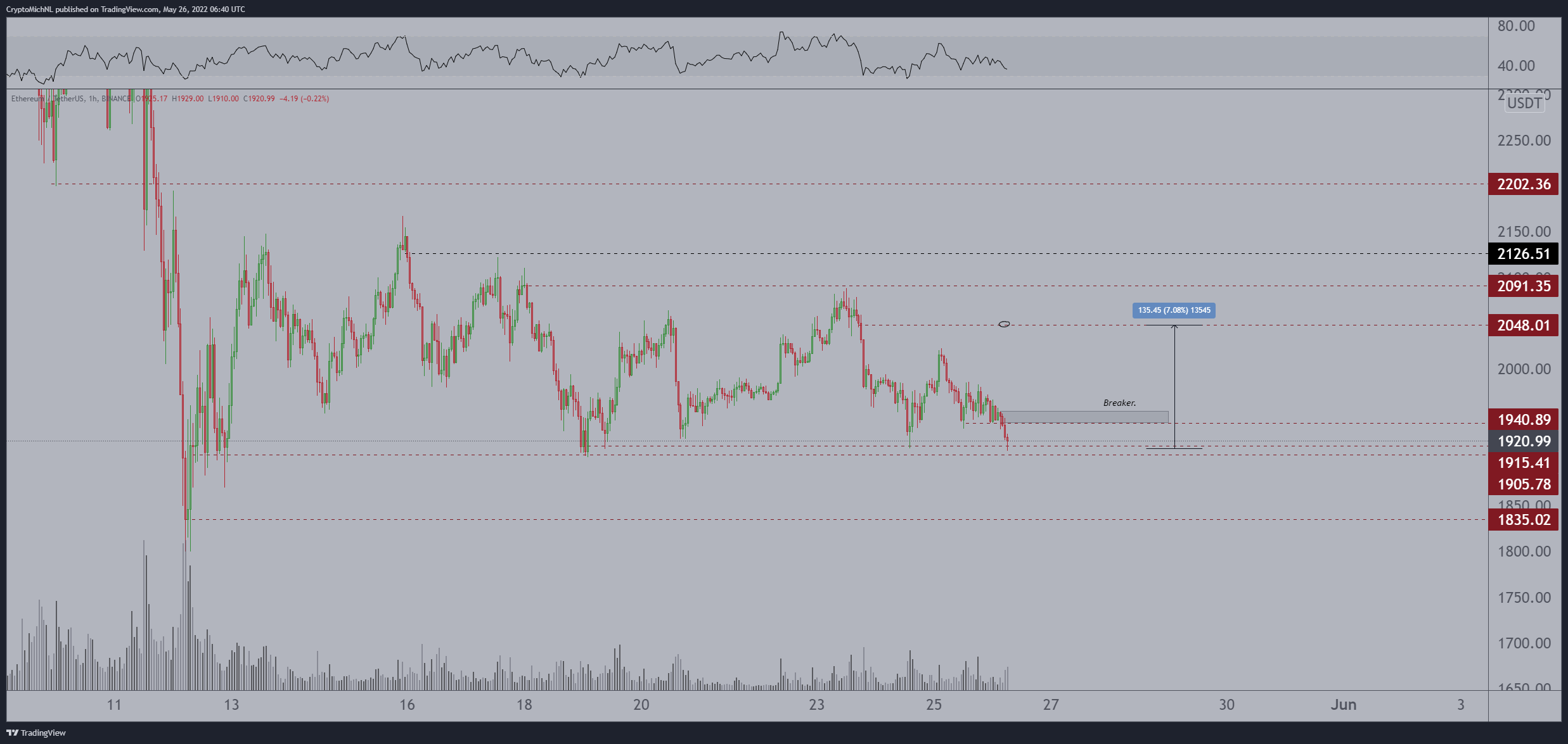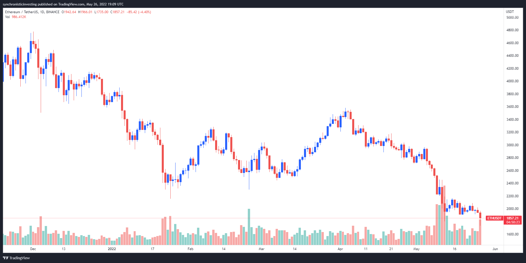 The cryptocurrency market was hit with another round of selling on May 26 as Bitcoin (BTC) price dropped to $28,000 and Ether (ETH) briefly fell under $1,800. The ETH/BTC pair also dropped below what traders deem to be an important ascending trendline, a move that traders say could result in Ether price correcting to new lows.