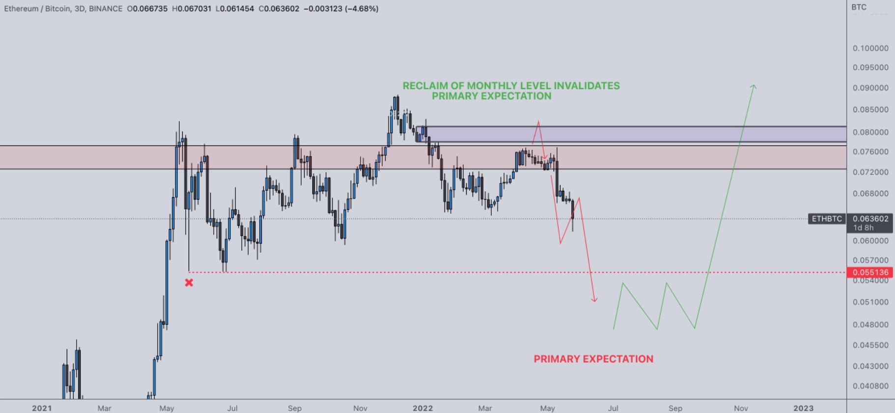 “This means that at least one of these statements will be true: $ETH is weakening relative to $BTC; $BTC will outperform $ETH; Alts will underperform $BTC.”