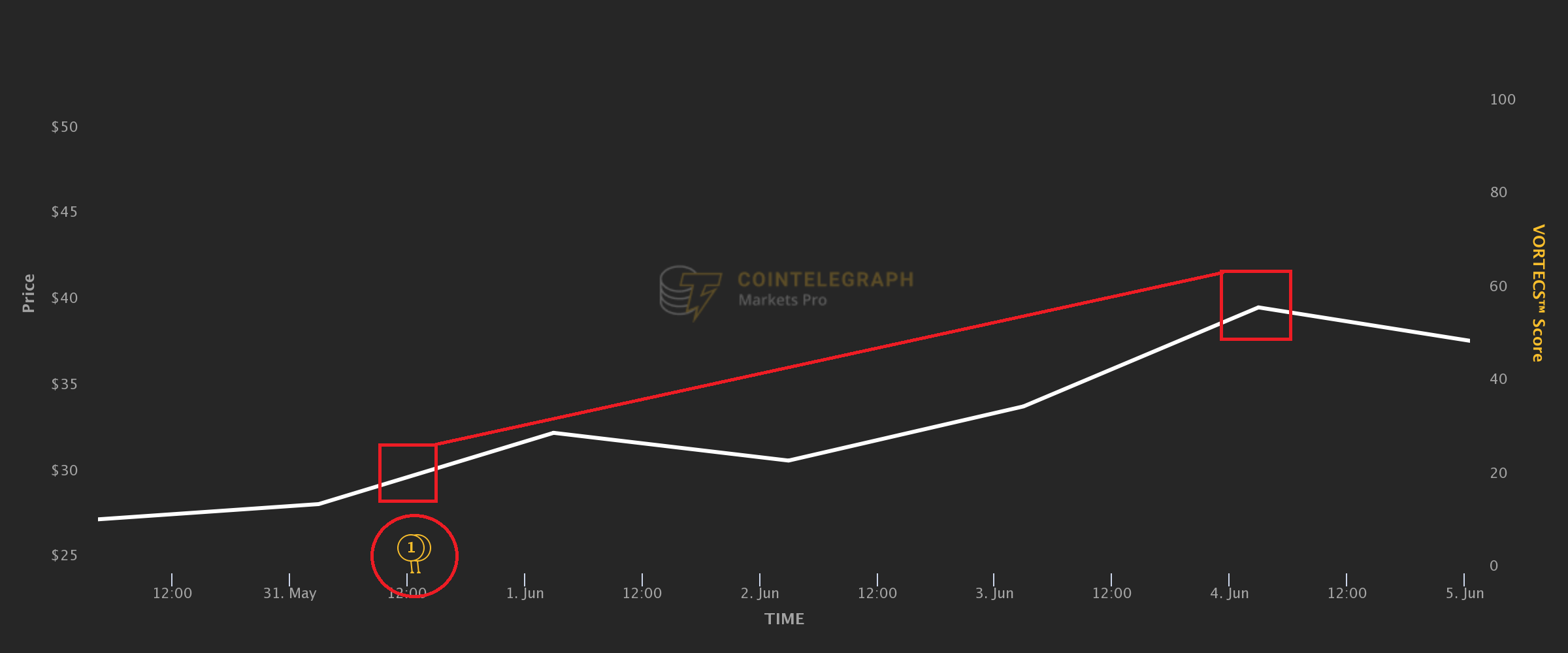 As the graph shows, Solana’s price did not spike sharply thereafter, but rather adopted a smoother trajectory that saw it rise from around $31 at the time of the NewsQuakes™ to almost $38 within three days — a 19% increase in value.