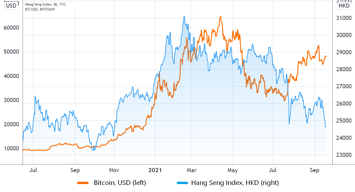 On the other hand, Bitcoin started to mimic the Hong Kong stock market, as measured by the Hang Seng Index (HSI). Among its top constituents are Tencent, Alibaba, and Meituan, which are billion-dollar Asian technology companies.