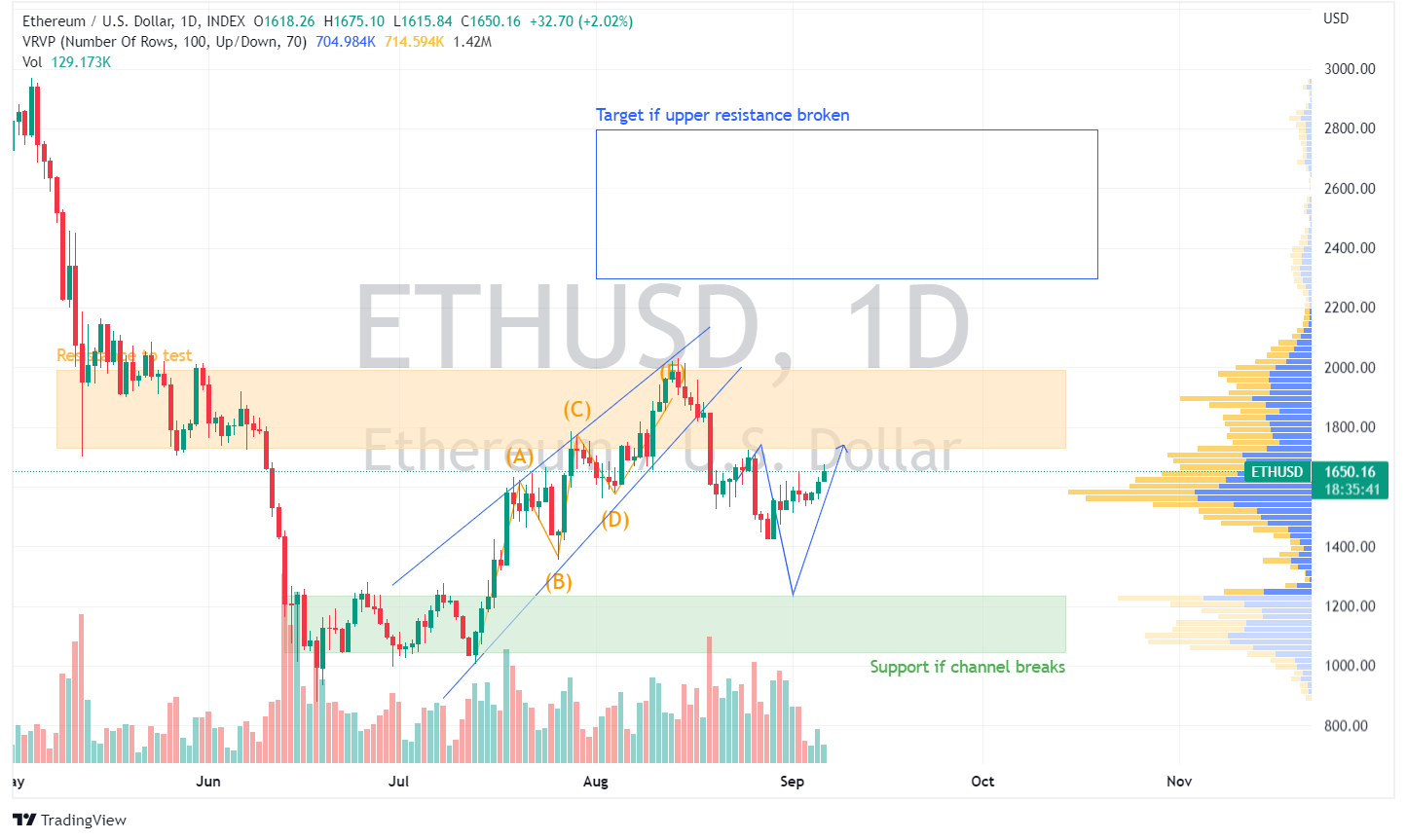 - ETH is approaching the $1,750 resistance. A break will bring us towards $2,000 first and then to $2,400.