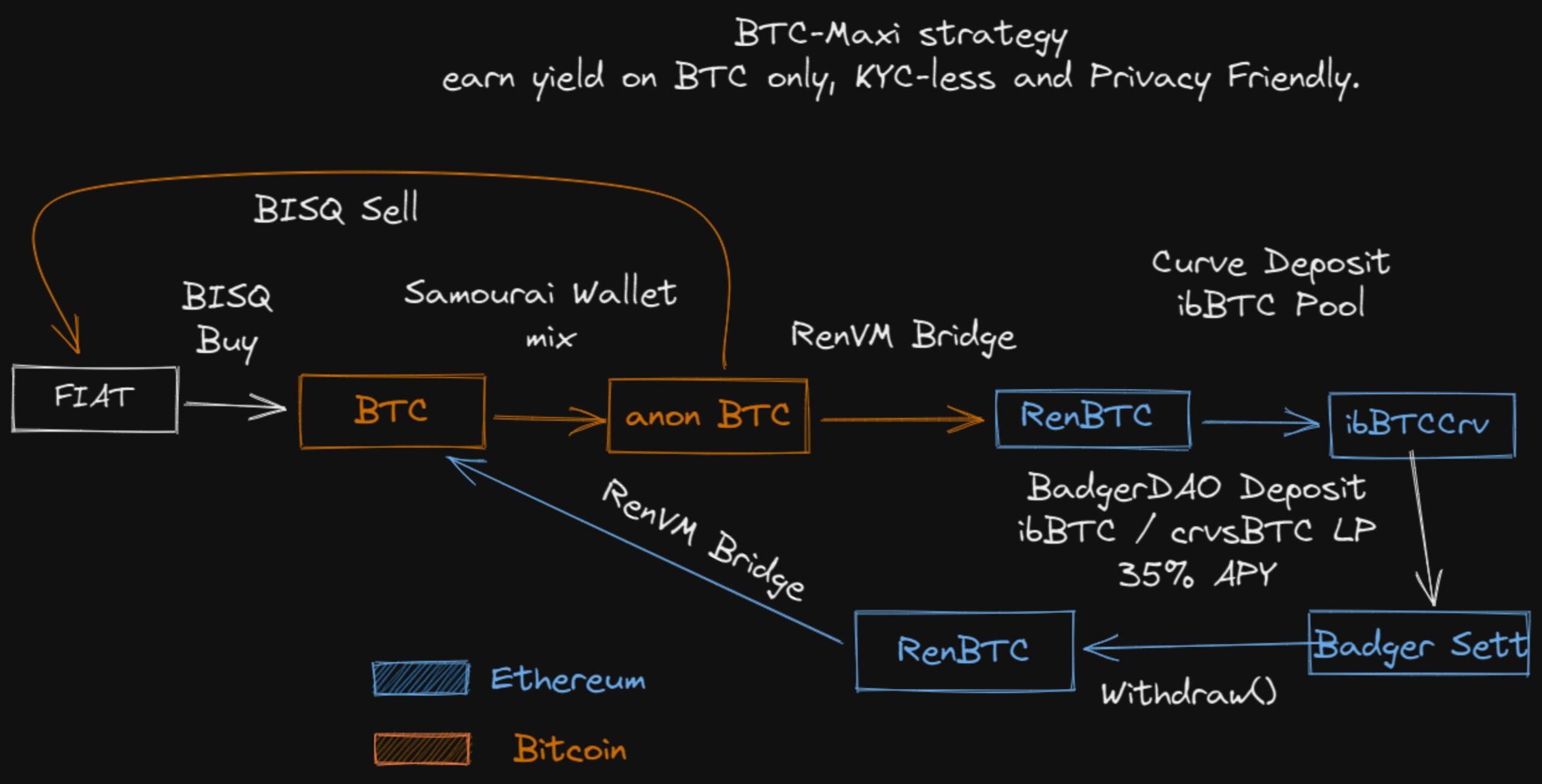 Once the “not your keys, not your coins” hurdle has been removed more possibilities emerge. Depending on your risk appetite, you can earn between 2-8% on your bitcoins. If you are willing to use bridges, you can boost your return into the double-digit percentage area. E.g., this strategy returns roughly 35% but requires that you take some risks: