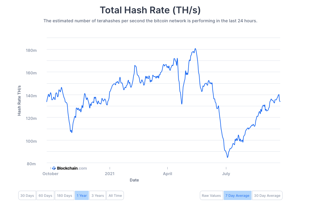 After its recent shutdown in China, the mining industry has already managed to recover a bit, and the hashrate (TH/s) of the Bitcoin network has definitively stabilised after the massive drop. It has even started to increase over the last couple of weeks.