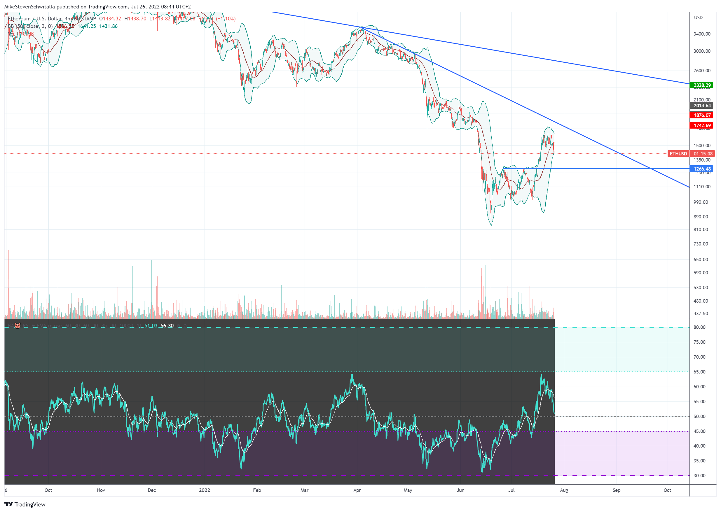 In the last three weeks, ETH has performed well. This is due to the good news regarding the merge. Nevertheless, a consolidation towards USD 1,260 is likely. We will then need to reassess the situation.