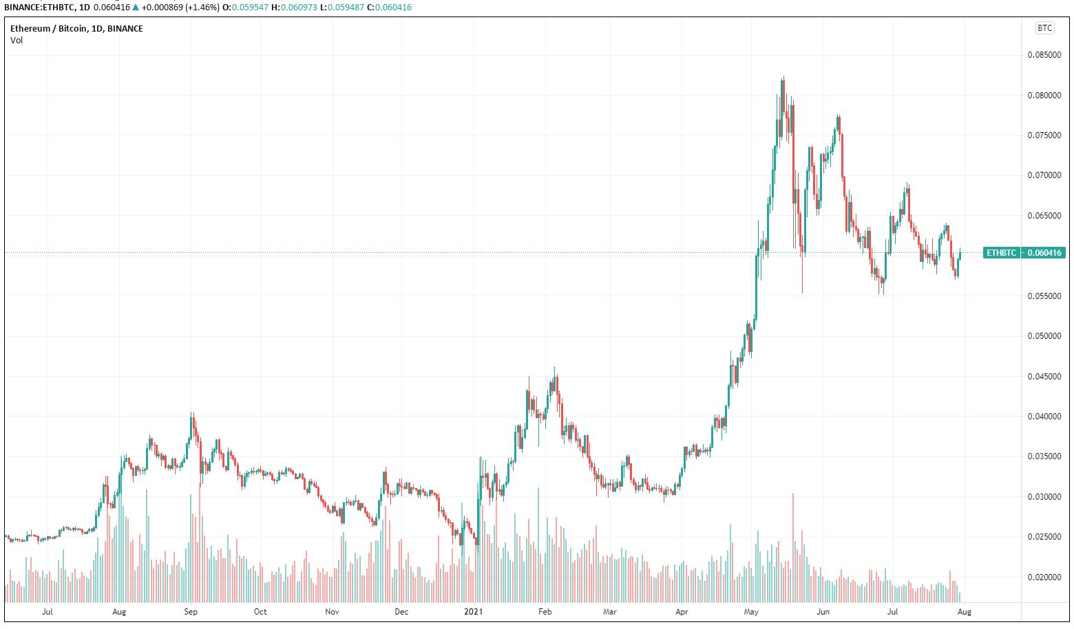 Ethereum / Bitcoin ETHBTC (daily)