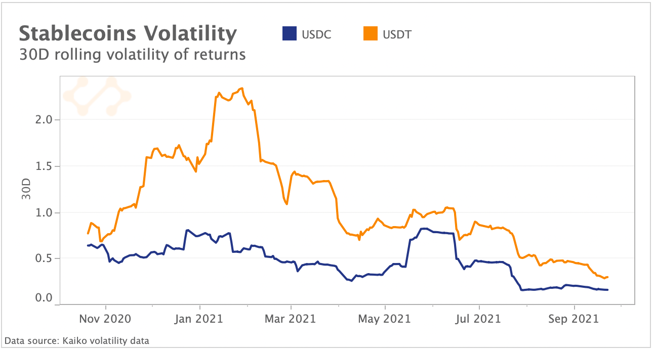 Tether (USDT) remains more volatile than USD Coin (USDC)