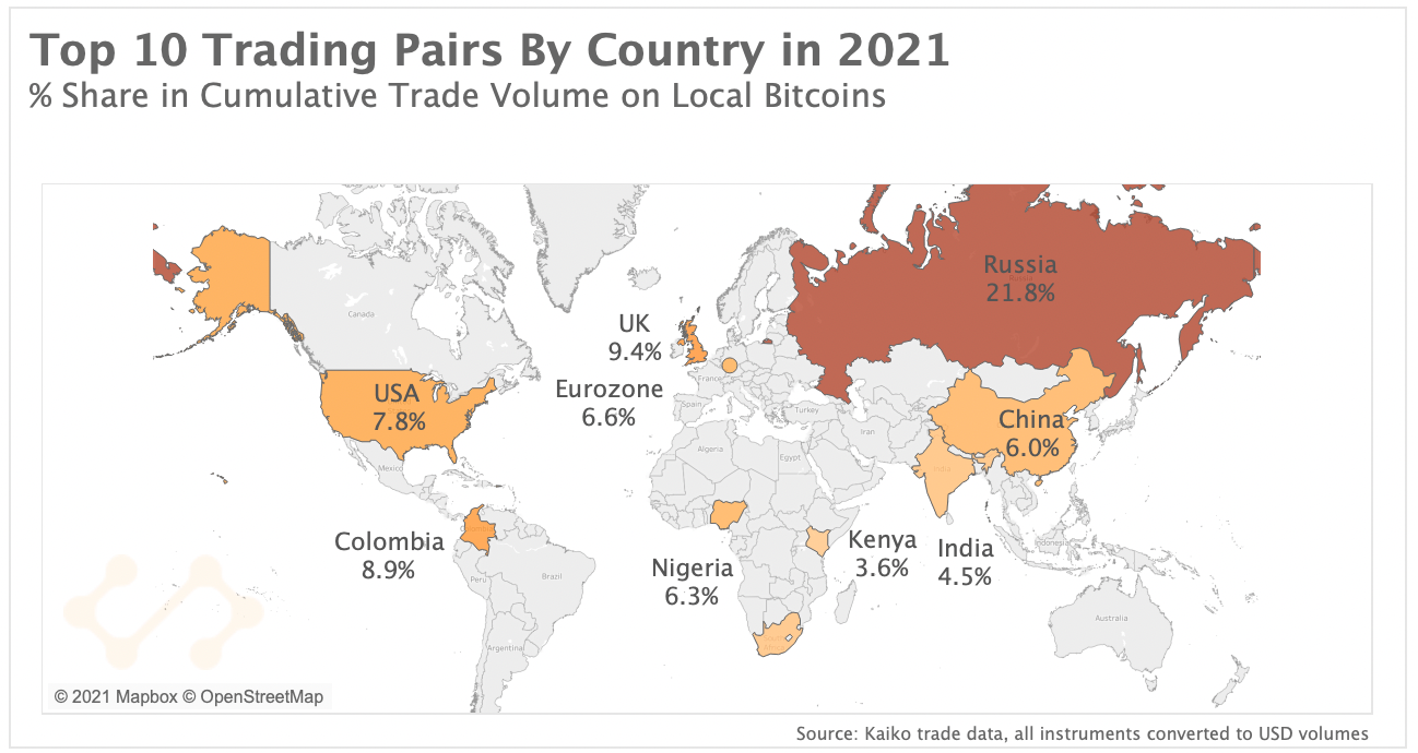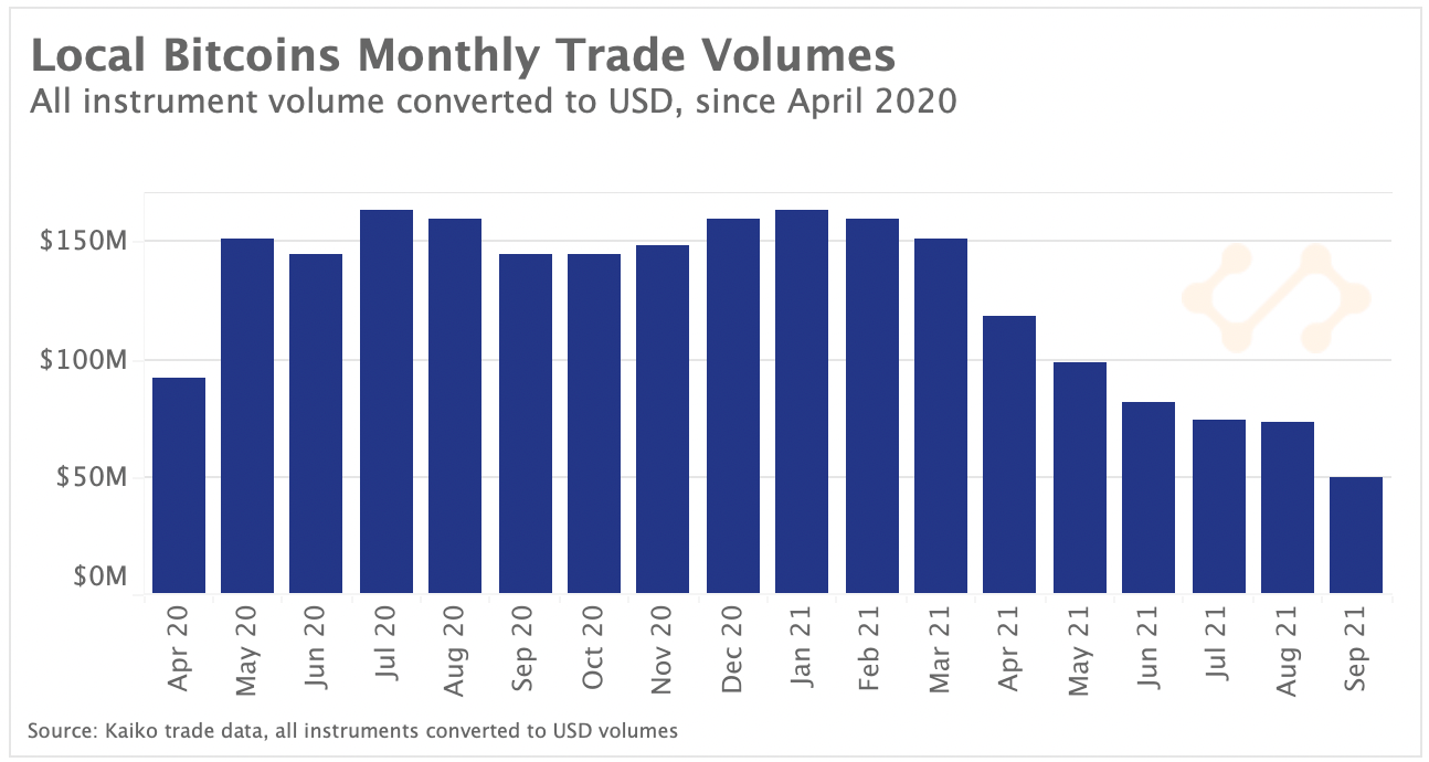 - Volume Dynamics: Peer-to-peer exchanges like LocalBitcoins are facing growing competition from centralized exchanges.