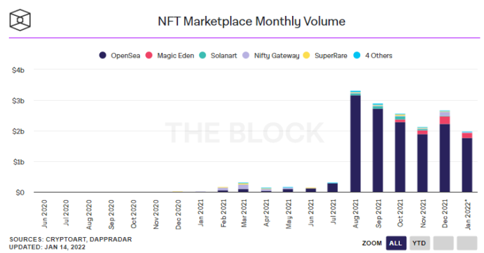 Although various marketplaces now exist and have benefited from the growing interest in NFTs, OpenSea was the big winner of the boom in 2021, with the platform recording trading volumes of around $14 billion at the end of the year. Despite its success, however, OpenSea has also come under criticism from the NFT community for several reasons.