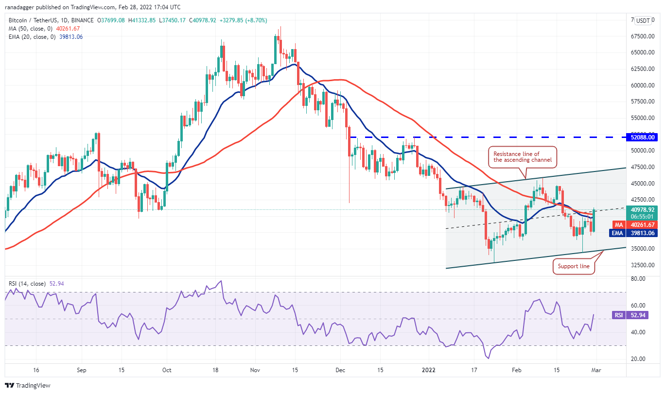 Bitcoin turned down from the 50-day simple moving average ($40,261) on Feb. 26 but the bears could not pull the price below $37,000. The price rebounded sharply today and the bulls have cleared the overhead hurdle at the 50-day SMA.