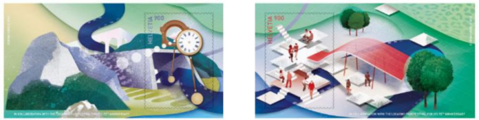 Two of the total ten newly created Swiss Crypto Stamps / Source: Inacta