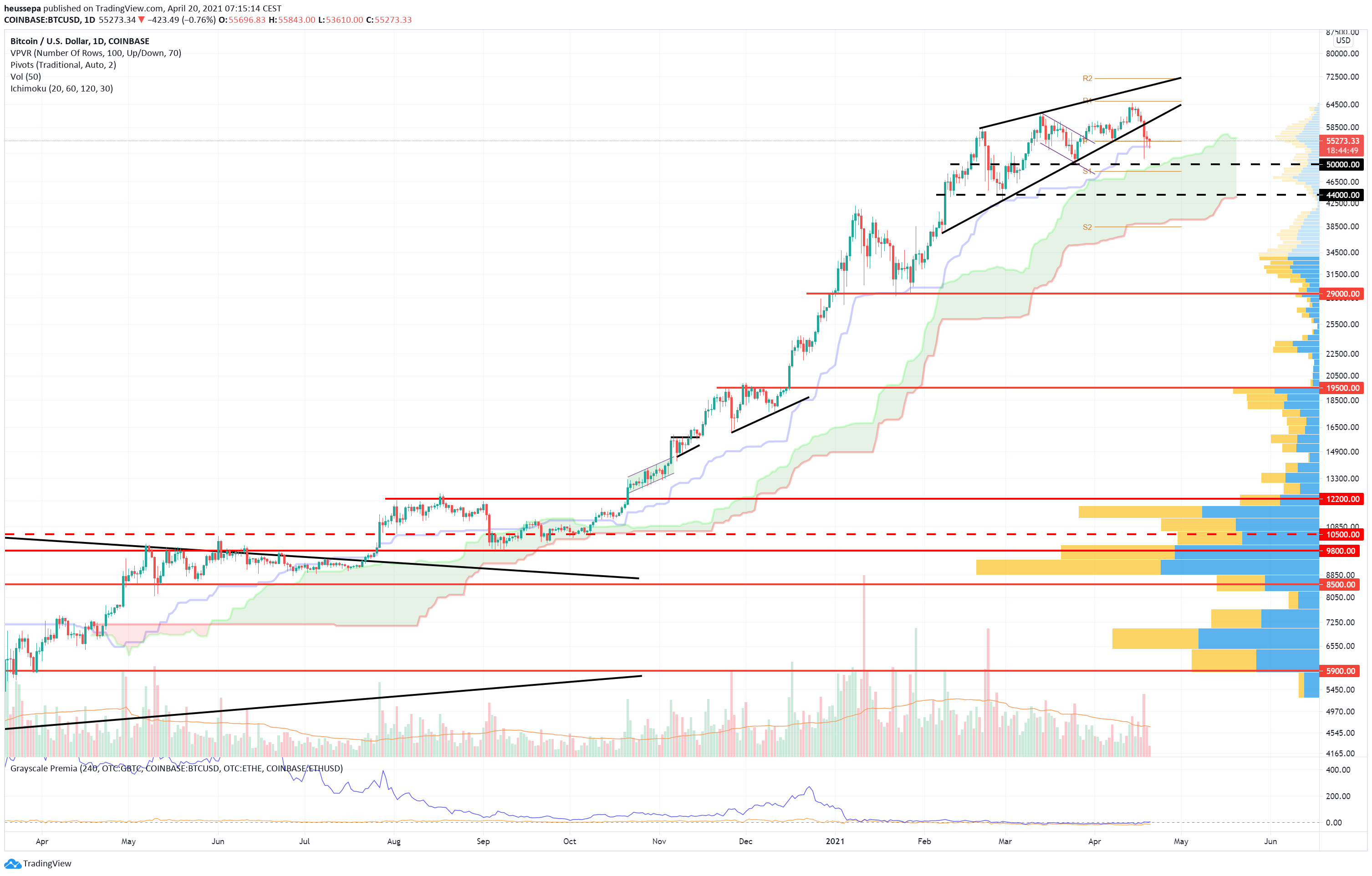 Is the bull run over? In my view: not at all. In terms of the daily chart, prices can correct down to the $44k level easily without hurting the bullish structure.