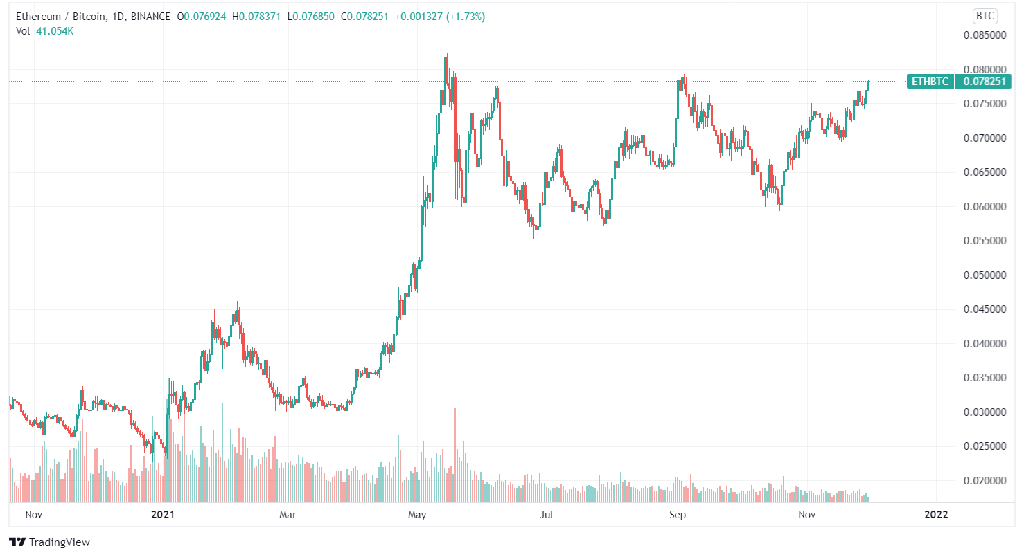 Ethereum vs. Bitcoin ETH/BTC (daily)