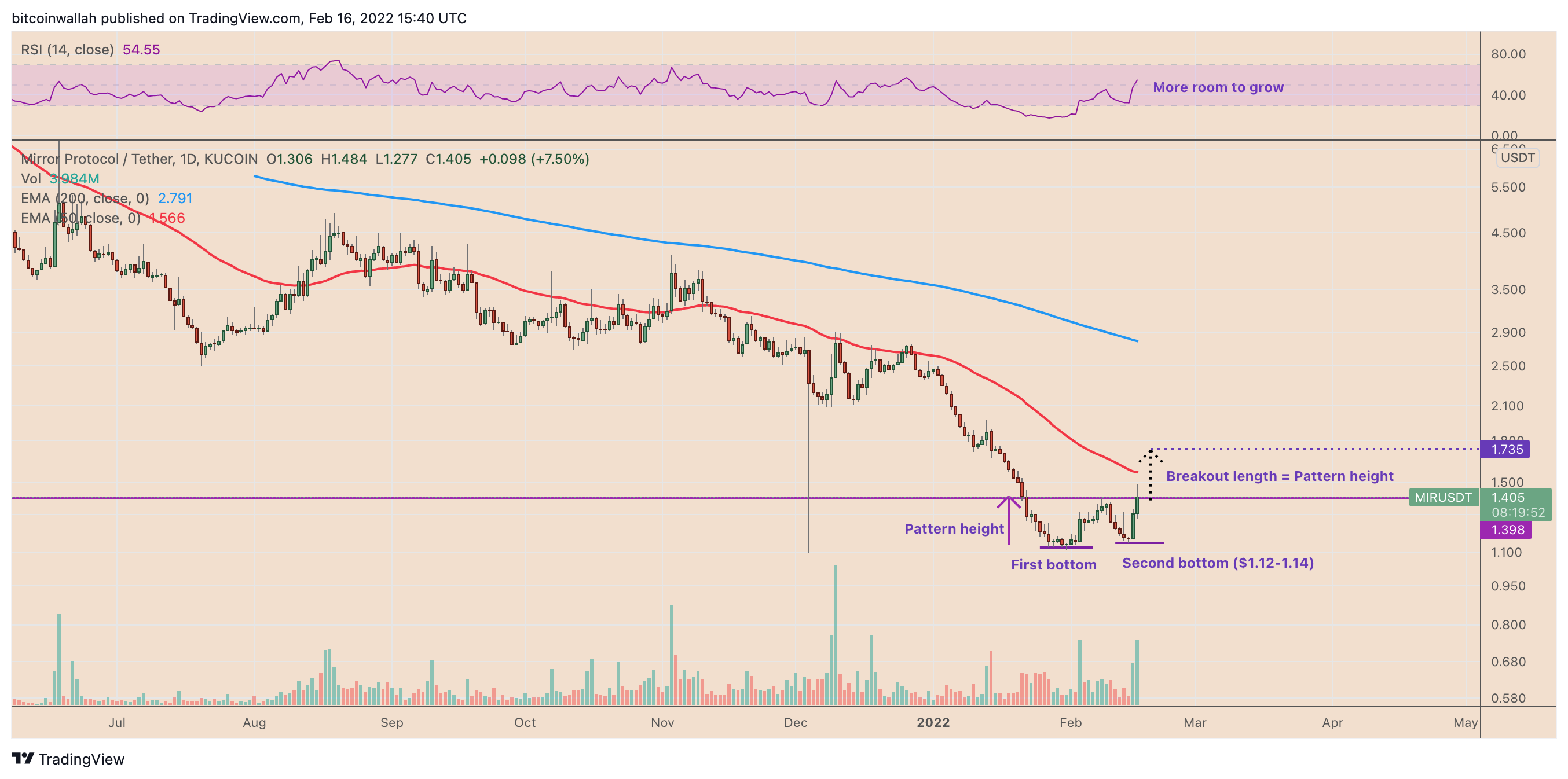 Additionally, MIR’s daily relative strength index (RSI), a momentum oscillator indicator, shows that it has been treading inside a neutral territory — with a reading around 54. Therefore, the Mirror Protocol token still has room to grow unless its RSI reading reaches 70, a sell signal.