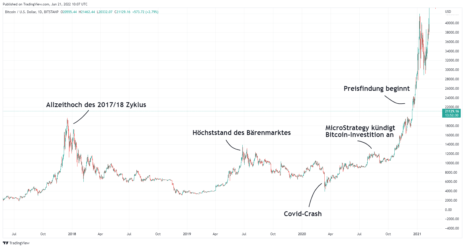 Towards the end of 2020, after the Covid shock and in line with first new emerging use cases on the blockchain infrastructure, a new crypto bull market was born. In December 2020, after 3 years of bear market, the alpha Bitcoin managed to break through its old all-time high at $20,000 from 2017 for the first time. A lot has happened since then: Bitcoin and other cryptocurrencies have recorded new all-time highs and the blockchain infrastructure has grown up a bit again. However, as always in such phases, there were exaggerations and the crypto market is currently paying for these capers with its ongoing harsh price correction.