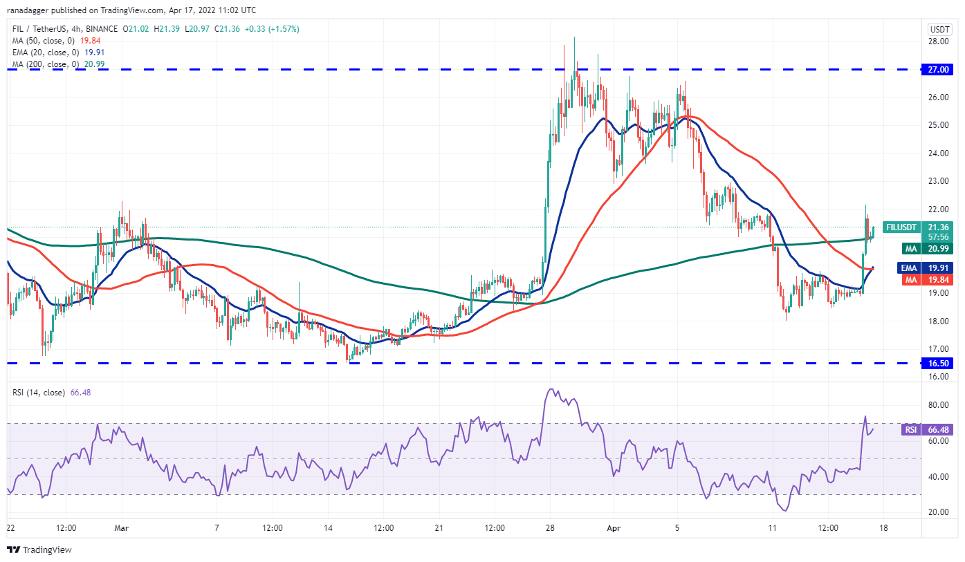 This positive view could invalidate in the short term if the price breaks below the 50-day SMA. The bears will then try to sink the FIL/USDT pair to the strong support at $16.50. A break and close below this level will indicate the resumption of the downtrend.