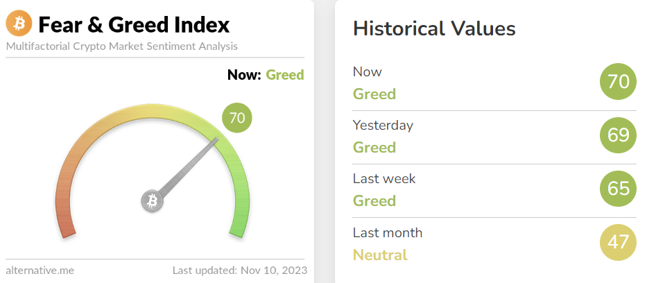 Institutional investors are not the only group feeling optimistic about the crypto market. As measured by the Bitcoin Fear & Greed Index, improved sentiment can also be seen in retail, noting a 23-point increase over the last month.